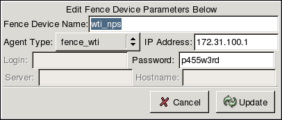 • Server — The server name of the device (required when using the Global Network Block Device (GNBD) as a fencing method.