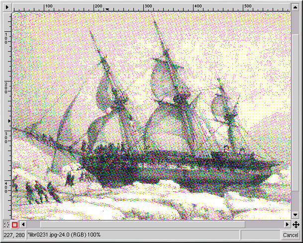 For example to make an image appear as if it was clipped from a newspaper, right-click on the image within the GIMP and select Filters => Distorts => Newsprint.... Select the quantity of lines per inch using the sliders. When a desired quantity is reached, click OK to render the image with the new effect applied. Figure 10-5 shows an example of an image after the Newsprint... filter has been applied: