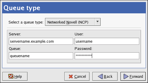 24.5. Adding a Novell NetWare (NCP) Printer