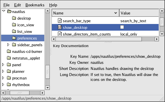 Unsetting this key also removes the desktop background menu, thereby eliminating access to the Open Terminal menu item. This is a recommended step for disabling command line access as described in Section 4.4 Disabling Command Line Access.